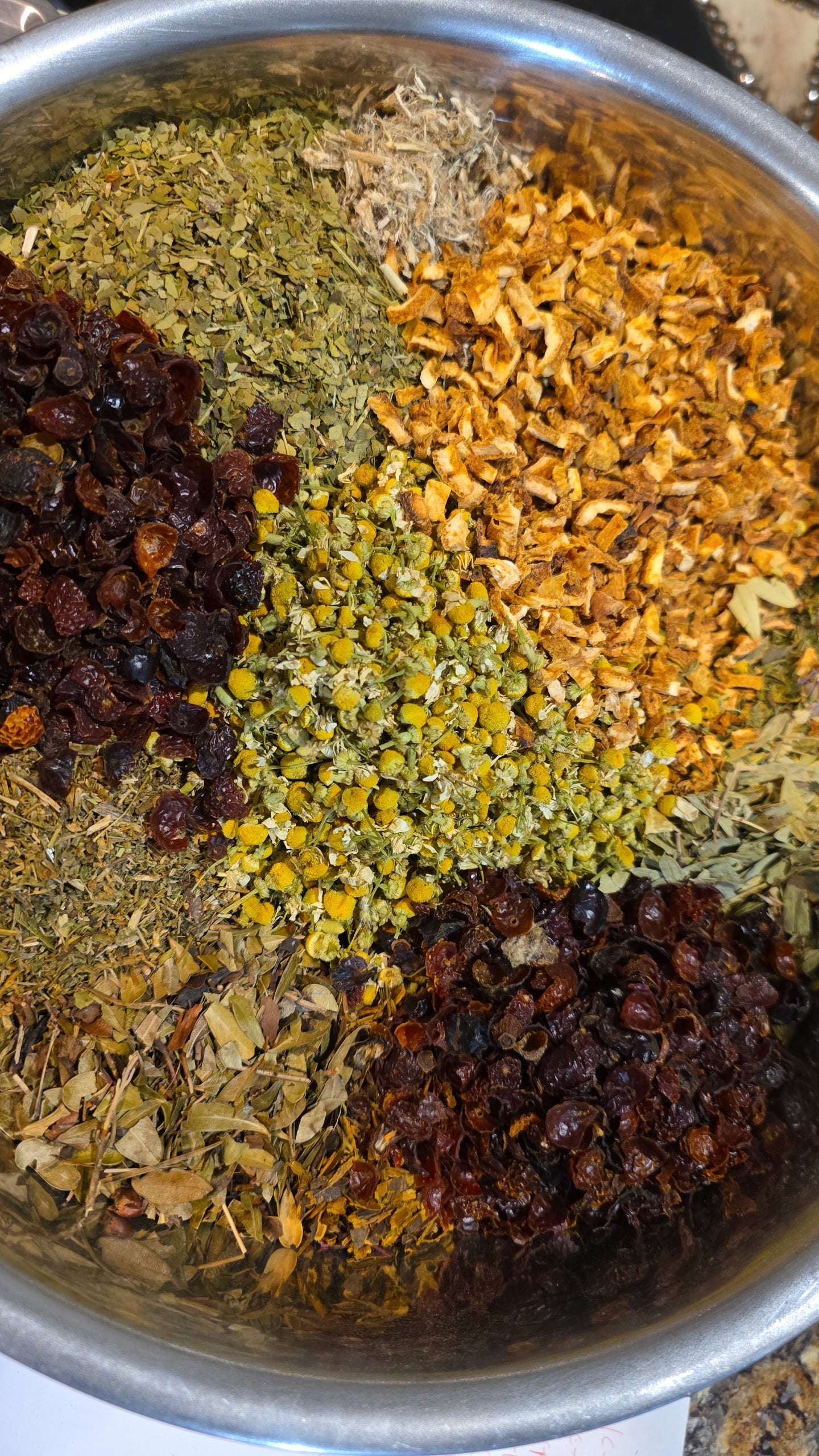 Senna- Senna tea is primarily known for its laxative properties and is often used to relieve constipation. It works by stimulating the muscles in the intestines, which helps to promote bowel movements. While it can be effective for short-term relief of constipation. Senna has an astringent toning effect on the digestive system and also effectively cleans the elimination system.